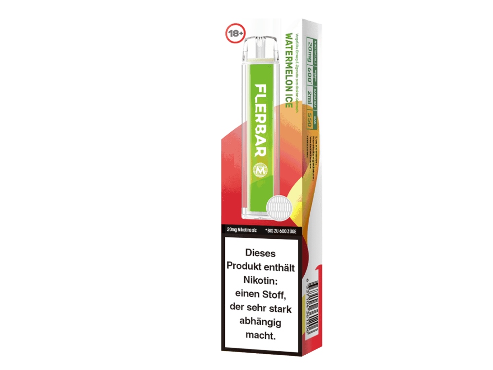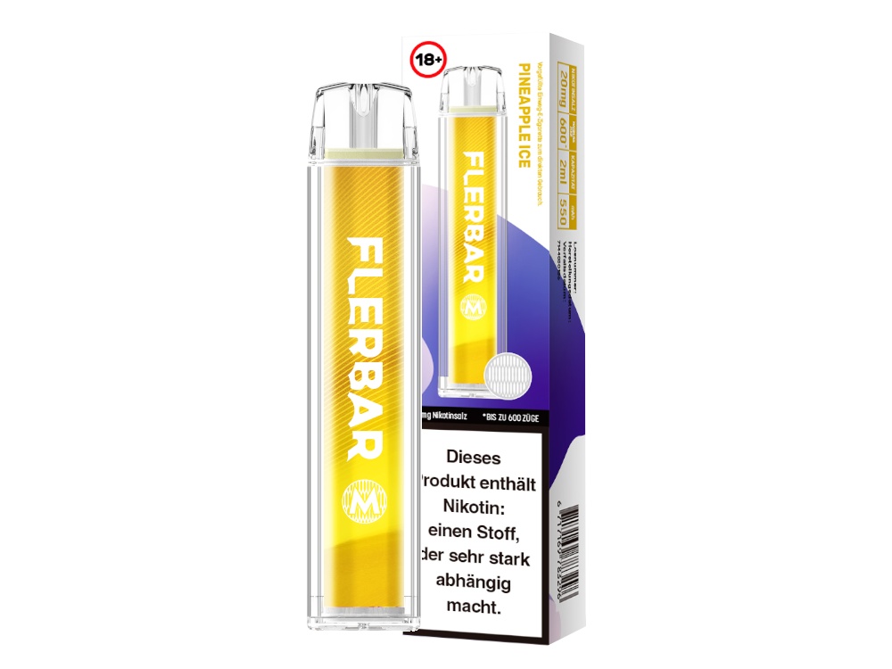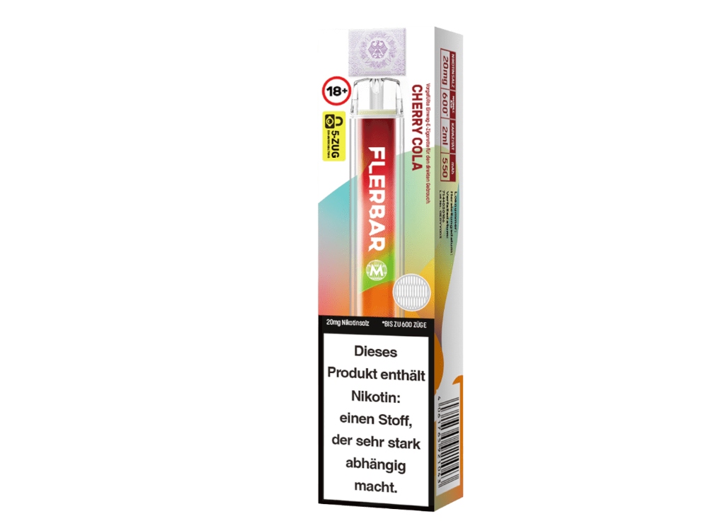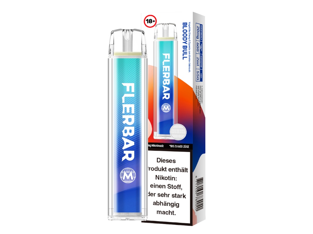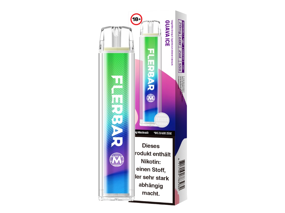 Die Flerbar M Einweg E-Zigarett kommt mit einer Akkukapazität von 550 mAh. Damit ist sie in der Lage, eine Nutzungsdauer von circa 600 Züge zu gewährleisten. Das kann aber je nach Zug- bzw. Dampfverhalten variieren. Die Flerbar M Disposable ist eine E-Zigarette mit vorbefüllten Pod bzw. Tank. Dieser fasst 2ml Liquid. Dank der Auswahl aus insgesamt 25 Sorten bietet sie eine breite Palette an Geschmacksrichtungen, um der individuellen Vorliebe gerecht zu werden. Es stehen 25 Sorten mit einer Nikotinstärke von 20 mg/ml zur Auswahl, von denen 10 auch in der Stärke 0 mg/ml erhältlich sind. Die Flerbar M Einweg E-Zigarette ist eine Option für Nutzer, die nach einer praktischen und benutzerfreundlichen Alternative zu herkömmlichen E-Zigaretten suchen. Mit ihrer Akkukapazität, dem Liquidvolumen und der Vielzahl an Geschmacksrichtungen bietet sie ein Dampferlebnis, bei dem jeder fündig wird.