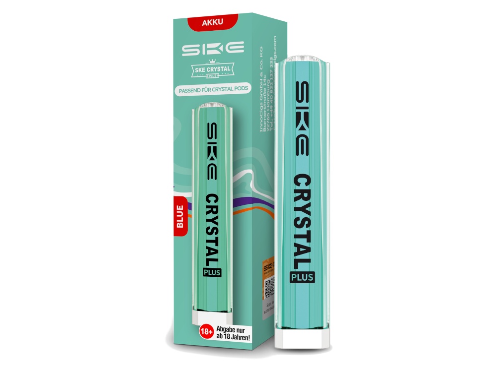 Der Crystal Plus Akku von SKE ist mit einer Kapazität von 400 mAh ausgestattet und wurde gezielt für die Verwendung mit den SKE Crystal Plus Pods entwickelt. Diese Pods können hier in unserem Shop mit vorbefüllten 2 Millilitern Nikotinsalz Liquid in 15 verschiedenen Geschmacksrichtungen oder als Leer-Pod erworben werden. In Kombination mit den Prefilled Pods beträgt die Ausgangsleistung des Crystal Plus Akkus 11 Watt. Die Aktivierung erfolgt durch Zug am Mundstück, und das Gerät zeichnet sich durch seine tastenlose und bedienelementfreie Gestaltung aus, was es besonders benutzerfreundlich macht, auch für Einsteiger. Für den SKE Crystal Plus Akku benötigen Sie bei Bedarf ein USB-C-Ladekabel, um ihn mit neuer Energie zu versorgen. Bitte beachten Sie, dass ein Ladekabel nicht im Lieferumfang enthalten ist. Durch die Möglichkeit, den Pod zu wechseln und den internen Akku aufzuladen, stellt der Crystal Plus eine nachhaltigere Alternative im Vergleich zu herkömmlichen Einweg-E-Zigaretten dar. Die kompatiblen Crystal Plus Pods werden durch einfaches Zusammenstecken mit dem Gehäuse des Akkus verbunden.